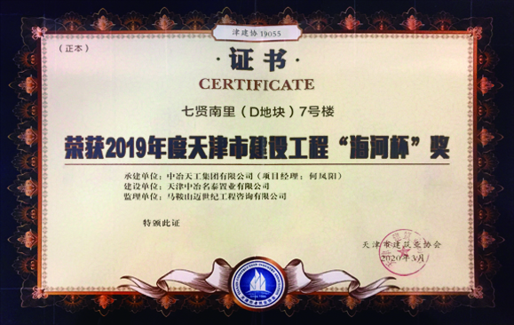 2019年度天津市建设工程“海河杯”奖-七贤南里(D地块)5号楼