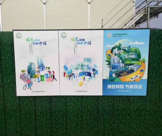 “小標(biāo)語”營造濃郁宣教氛圍。在施工現(xiàn)場張貼主題標(biāo)語及海報,廣泛普及節(jié)能宣傳周重要意義,傳遞節(jié)能降碳理念,提升職工節(jié)約資源、保護(hù)環(huán)境意識,共同營造節(jié)能減排、低碳環(huán)保良好氛圍。項目部還建立灑水清掃制度,配備灑水車、霧炮等設(shè)備,指定專人負(fù)責(zé)灑水及清掃,讓“綠色轉(zhuǎn)型,節(jié)能攻堅”主題深入人心。