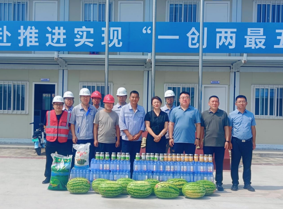 當前,項目正處于“沖出打樁”關(guān)鍵階段。面對高溫“烤”驗,建設(shè)者們堅守崗位,晝夜鏖戰(zhàn),全力保障工程進度。慰問現(xiàn)場,血站領(lǐng)導與項目部員工、一線工人親切交流,親手送上綠豆、涼茶、礦泉水等防暑物資,并細致詢問工人們的作息安排和身體狀況,叮囑大家科學調(diào)整作業(yè)時間,確保安全生產(chǎn)?!凹纫_M度,更要護平安!”站長的暖心話語,道出了共建雙方“以人為本”的共同理念。